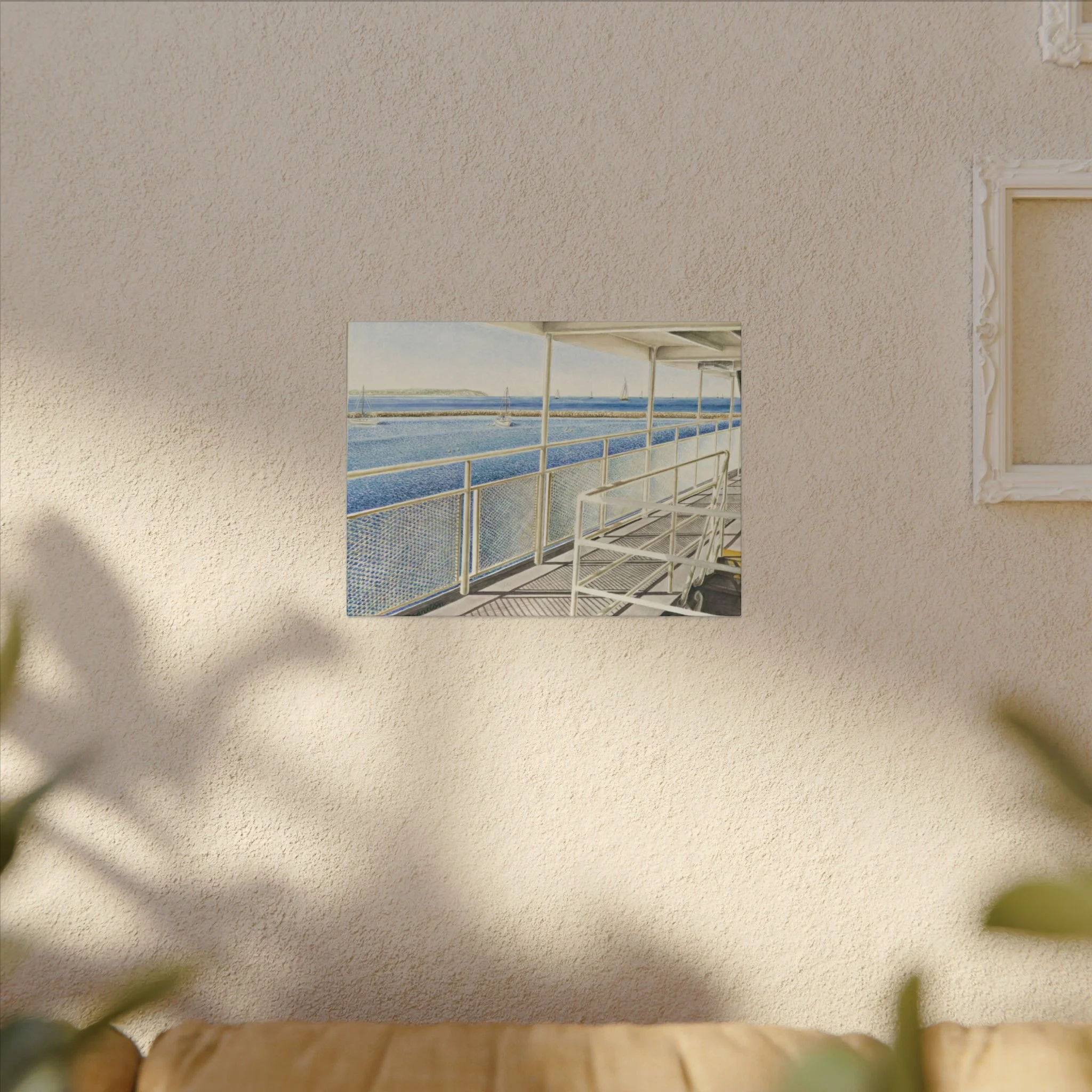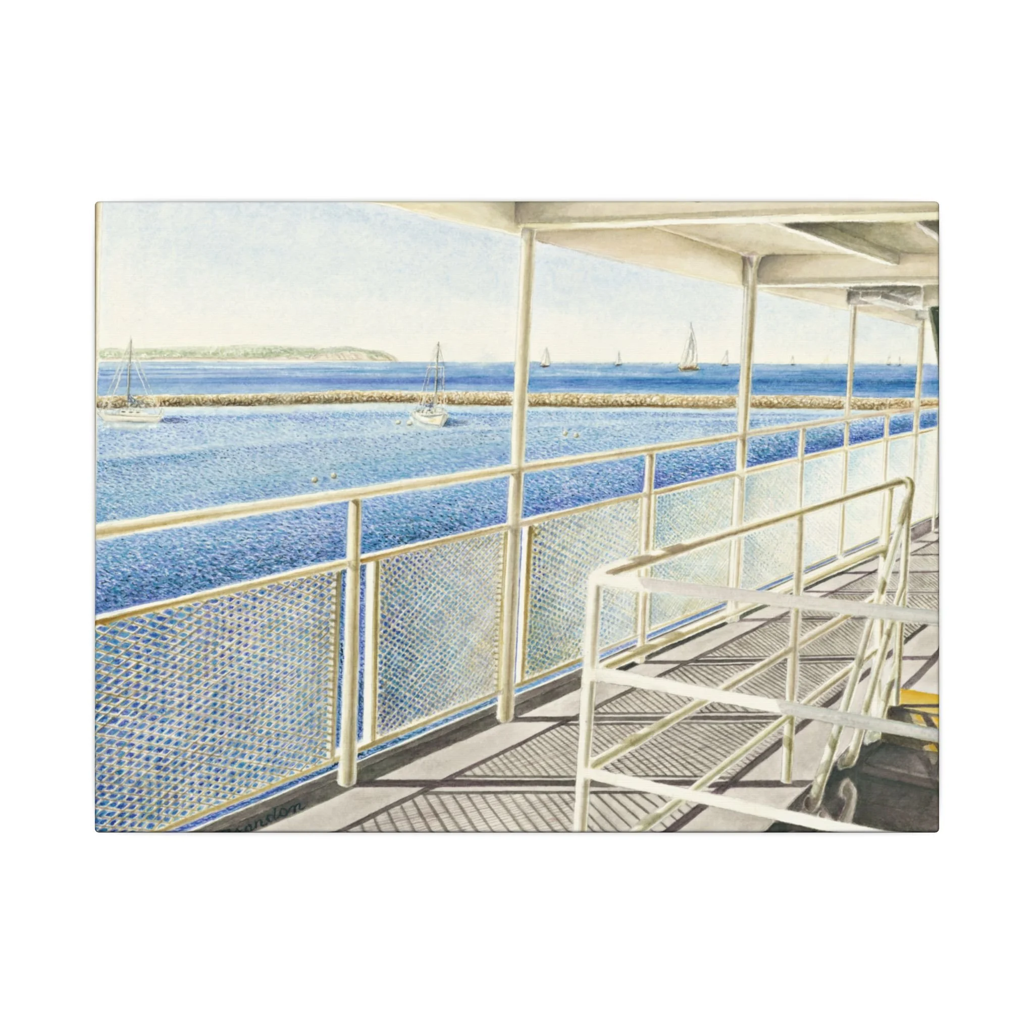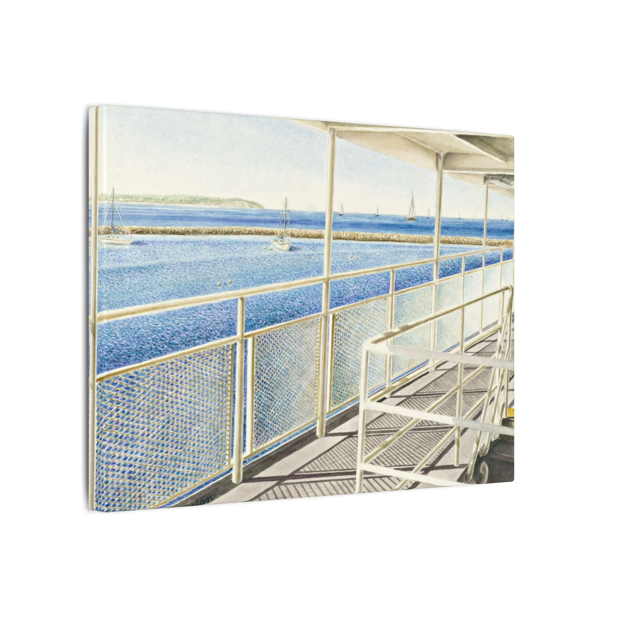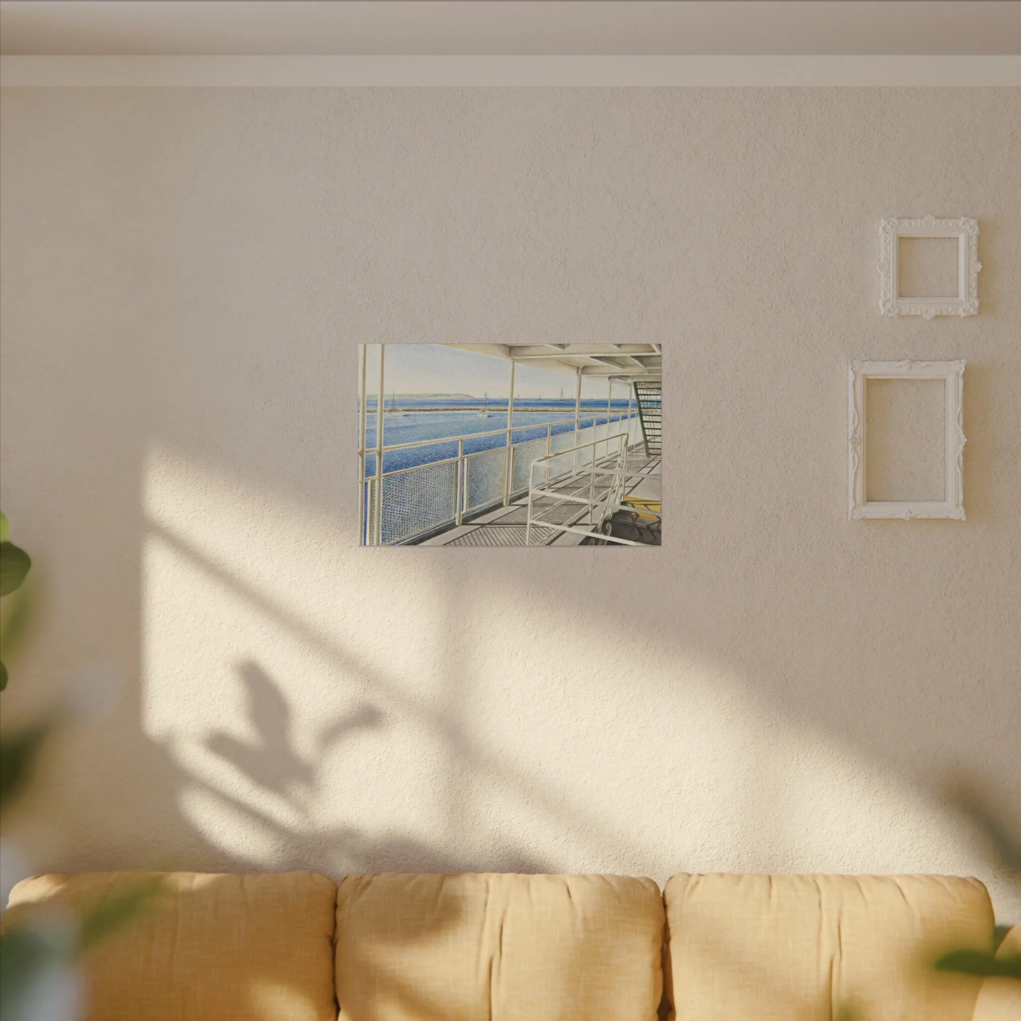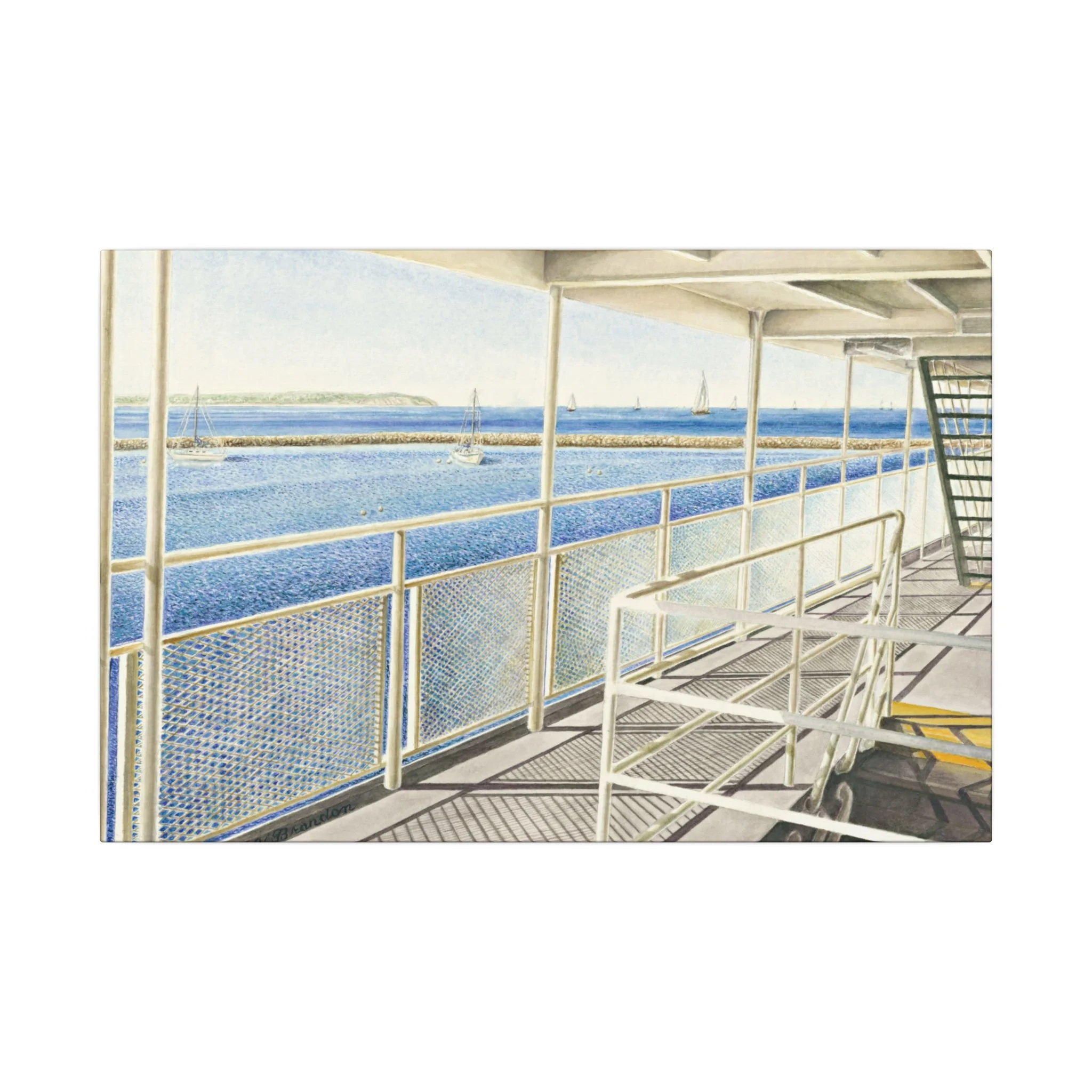 Step onto the ferry deck and breathe in the salt air. This stretched matte canvas reproduces Murray Brandon’s watercolor of Old Harbor—the moment island time begins. Soft washes of blue and white ripple across a textured, cotton substrate that keeps the watercolor’s delicate details alive. The solid support face keeps the canvas taut and gallery-ready, while archival giclée inks preserve the painting’s subtle contrasts so the scene keeps its glow for years. It hangs confidently thanks to discreet rubber pads that protect your wall and steady the piece. Hang it in a coastal entryway, a sunlit living room, or a study where travel memories collect; it quietly calls back to ferry decks, gull cries, and the hush that arrives when you first see Block Island’s shore.