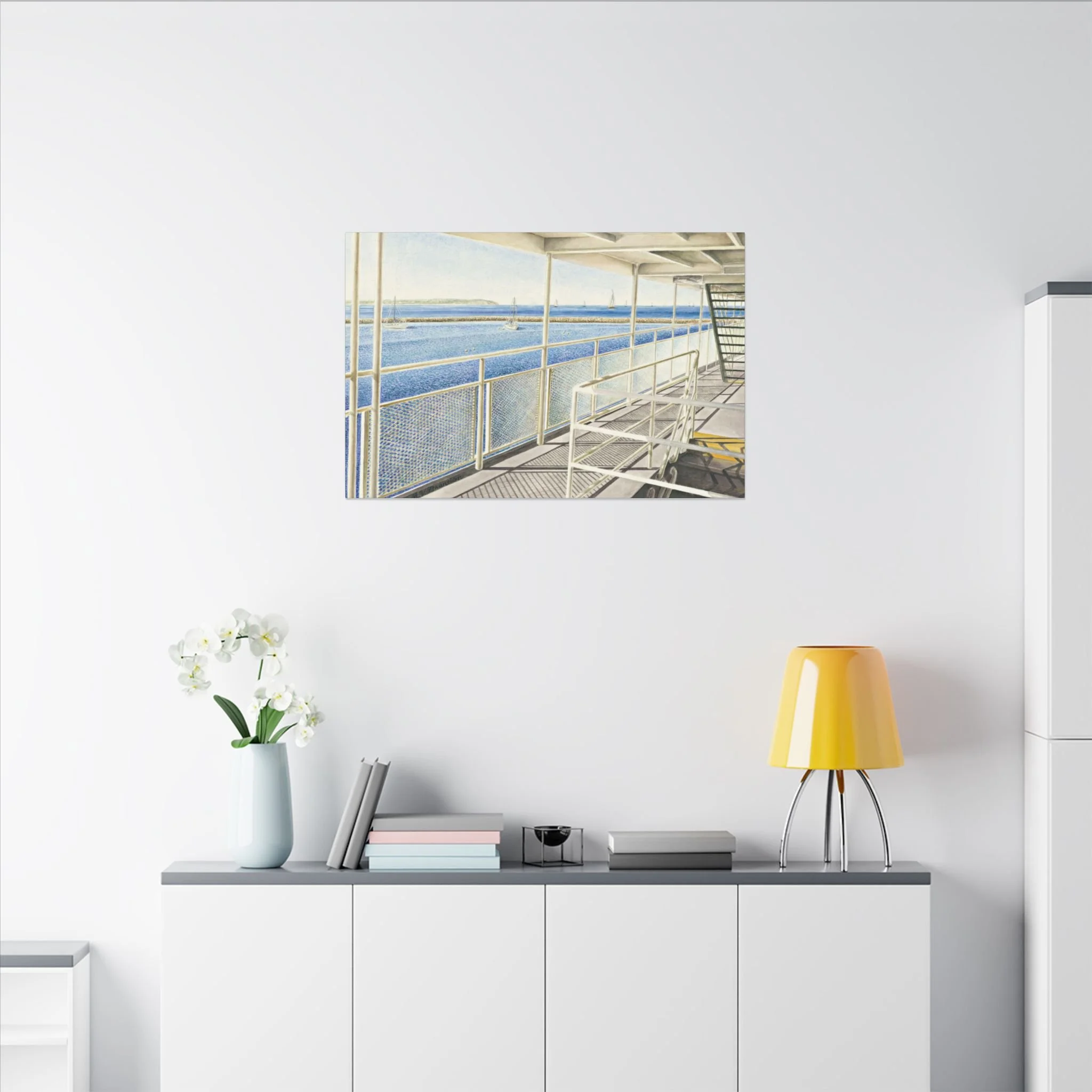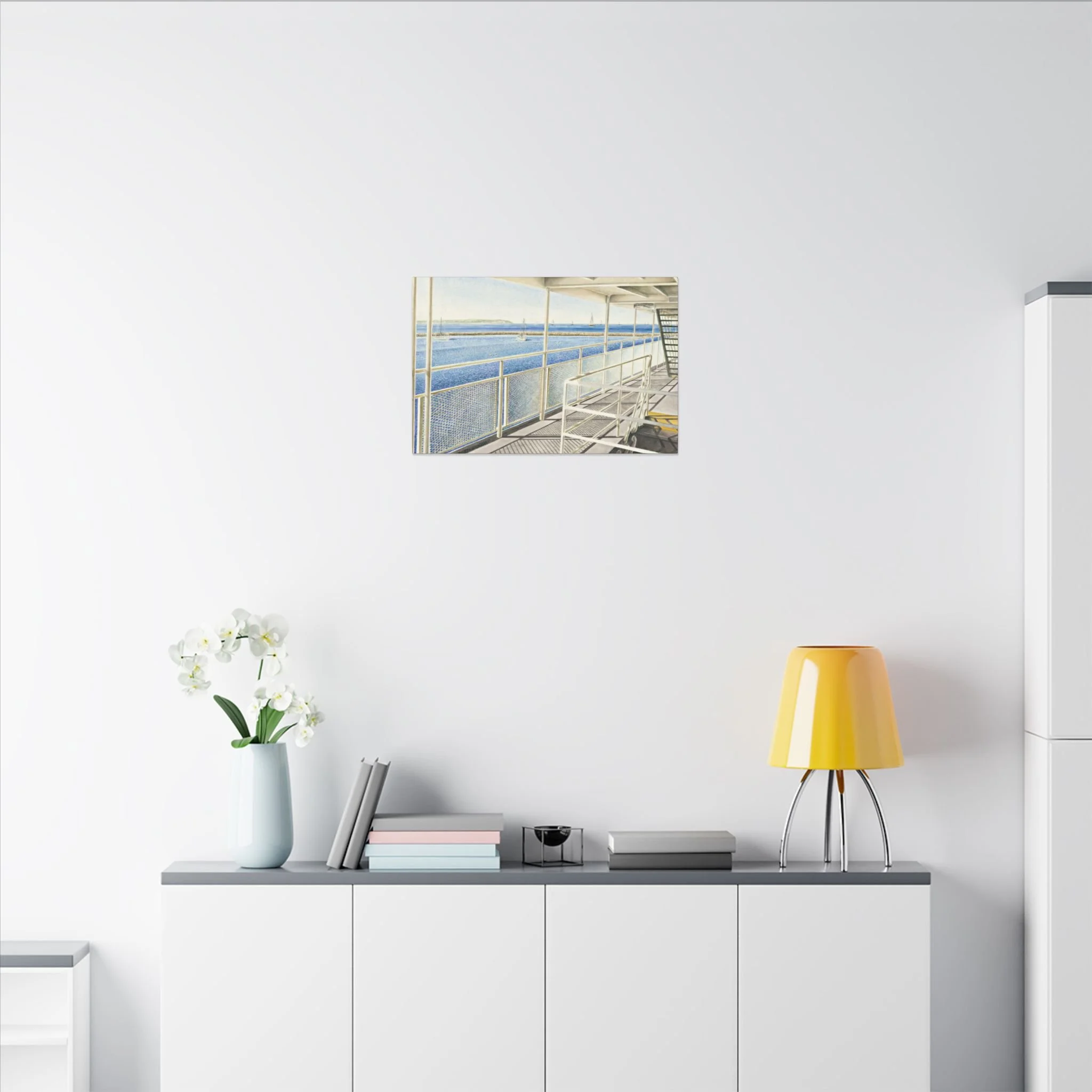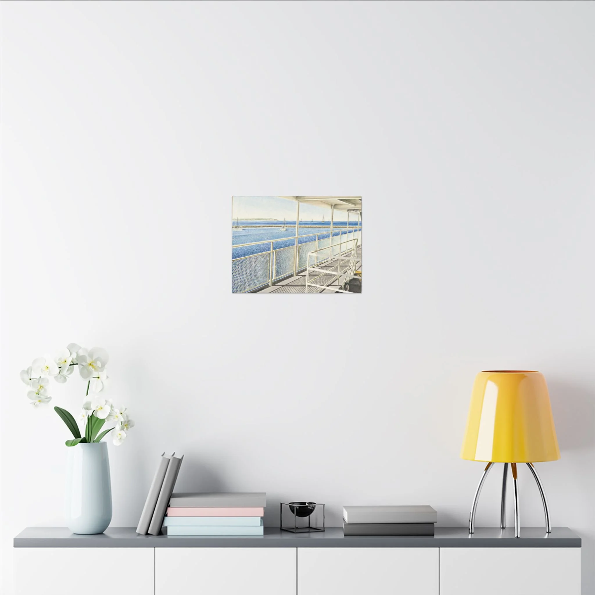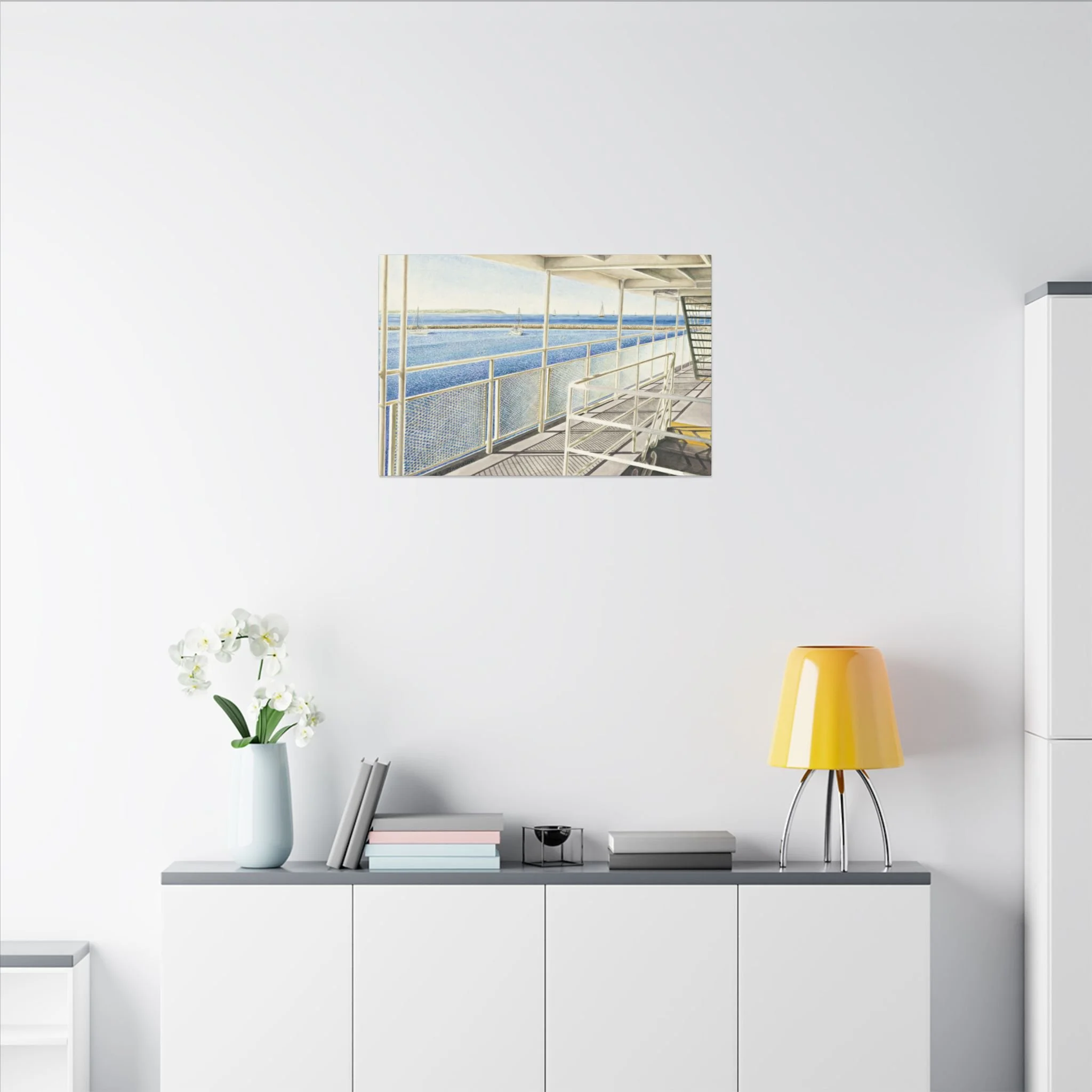 Step onto the ferry deck and breathe in the salt air. This stretched matte canvas reproduces Murray Brandon’s watercolor of Old Harbor—the moment island time begins. Soft washes of blue and white ripple across a textured, cotton substrate that keeps the watercolor’s delicate details alive. The solid support face keeps the canvas taut and gallery-ready, while archival giclée inks preserve the painting’s subtle contrasts so the scene keeps its glow for years. It hangs confidently thanks to discreet rubber pads that protect your wall and steady the piece. Hang it in a coastal entryway, a sunlit living room, or a study where travel memories collect; it quietly calls back to ferry decks, gull cries, and the hush that arrives when you first see Block Island’s shore.