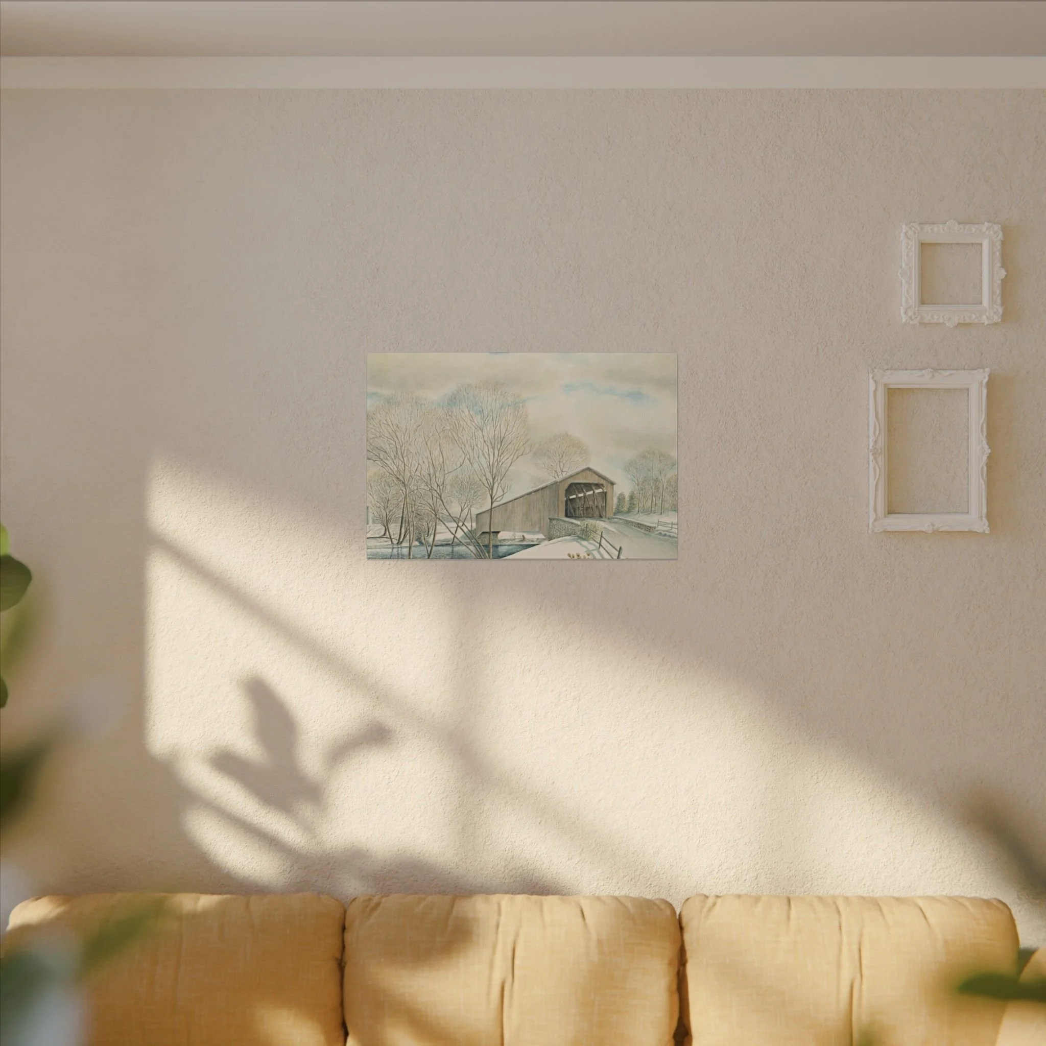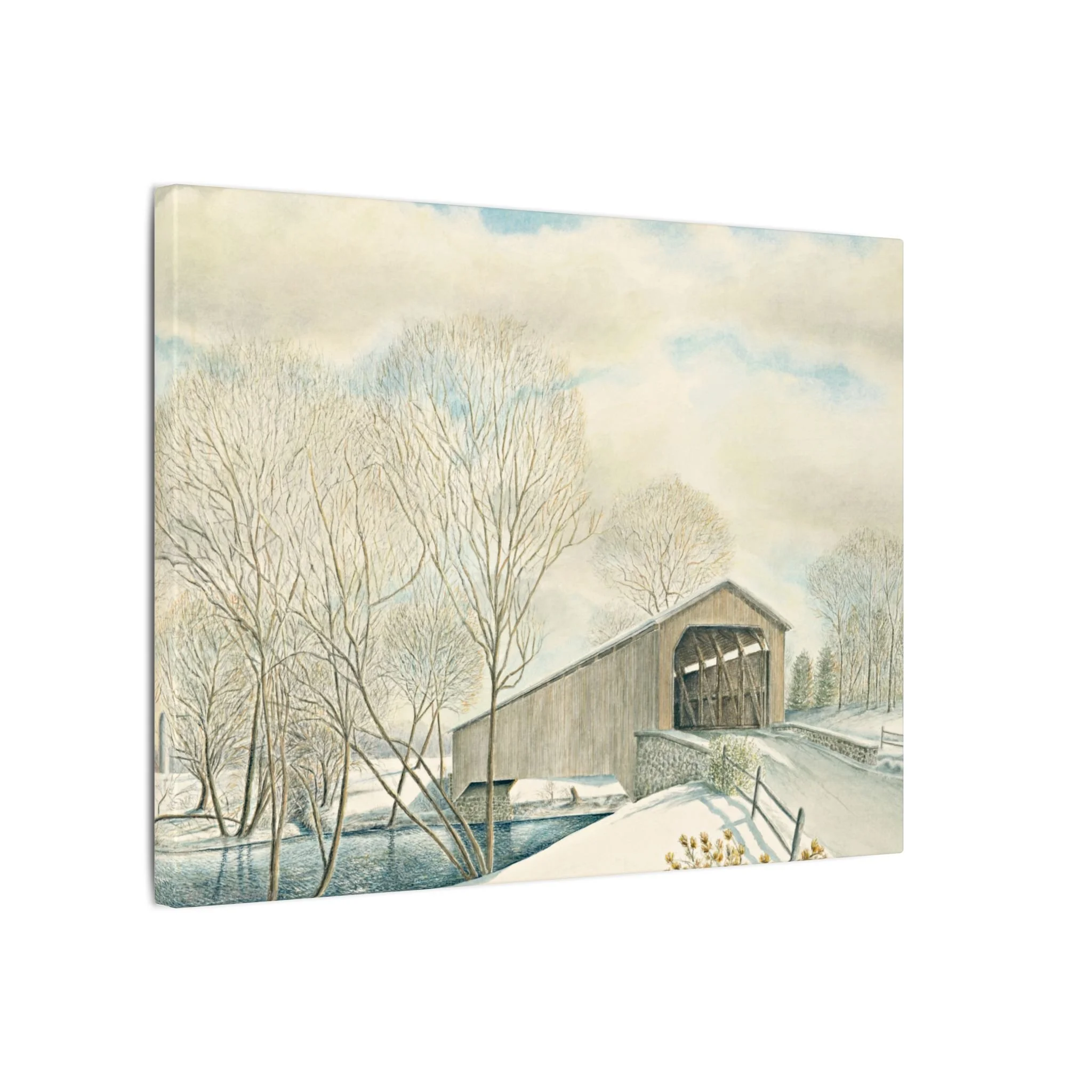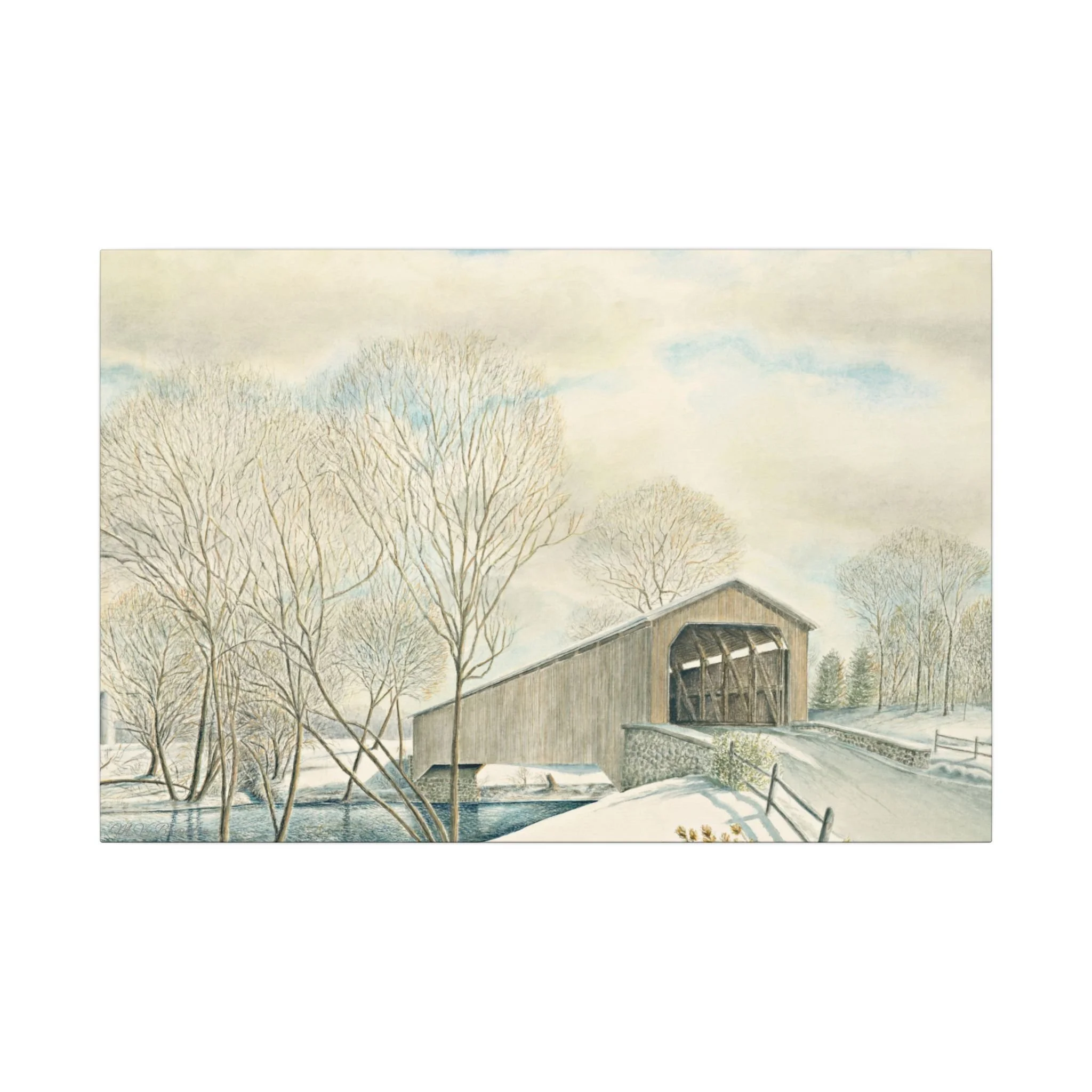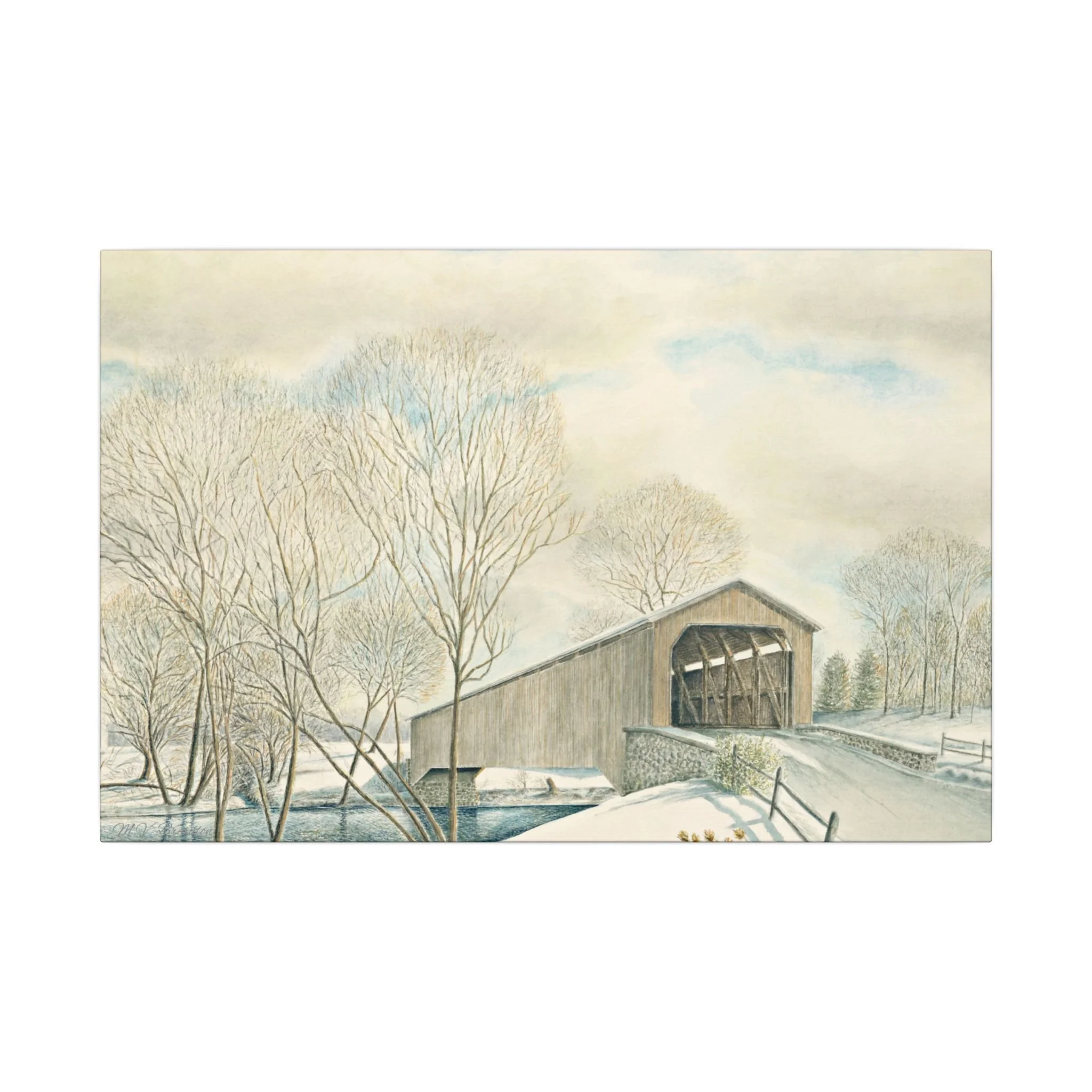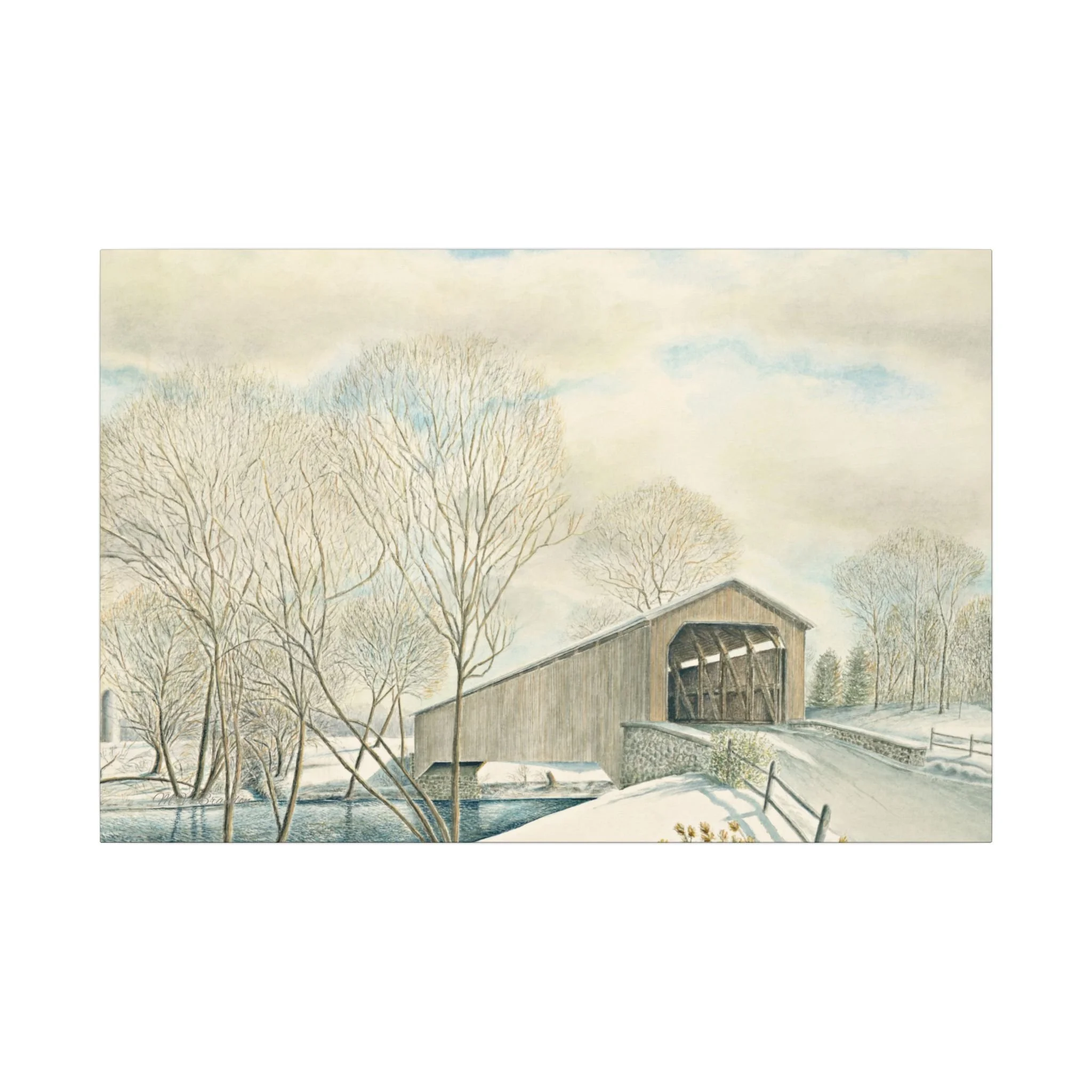 Hunsecker's Mill Bridge Watercolor Print Matte Canvas, Stretched | Lancaster PA Landscape
