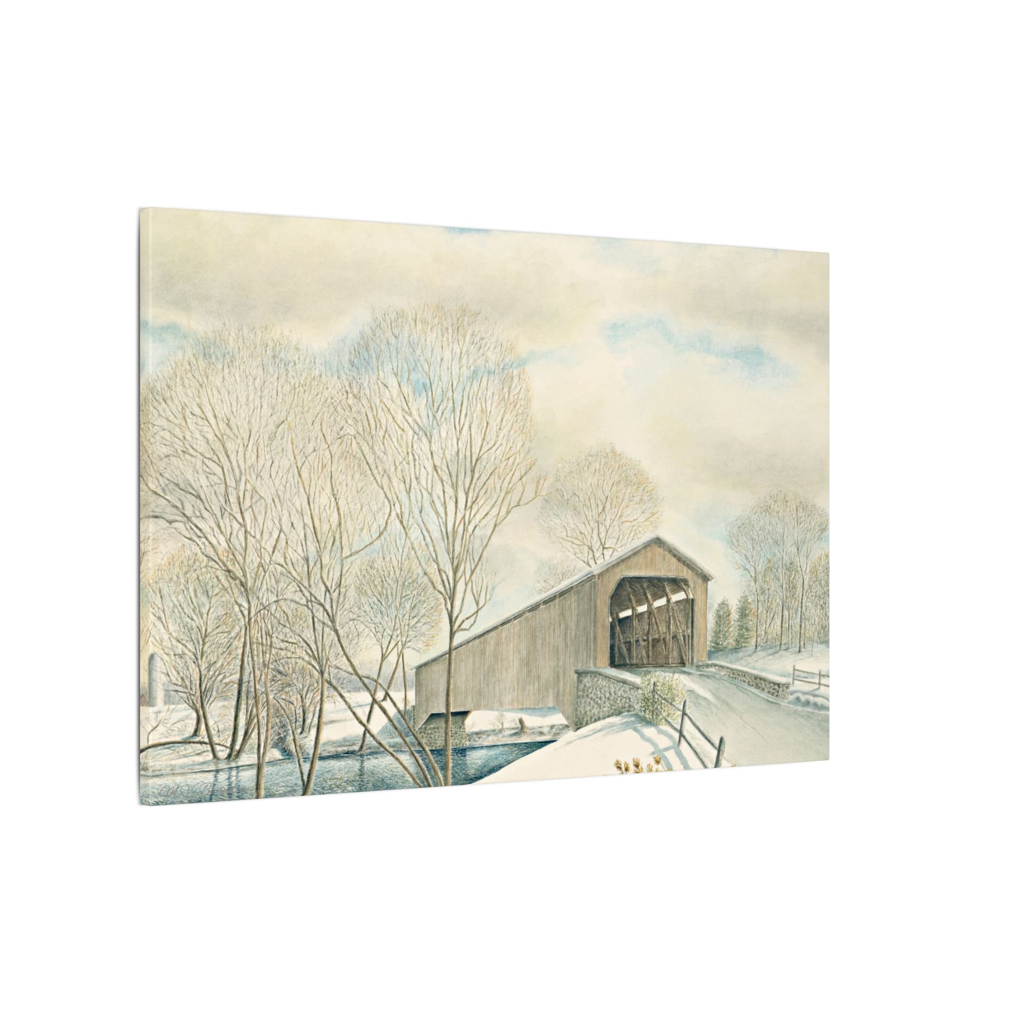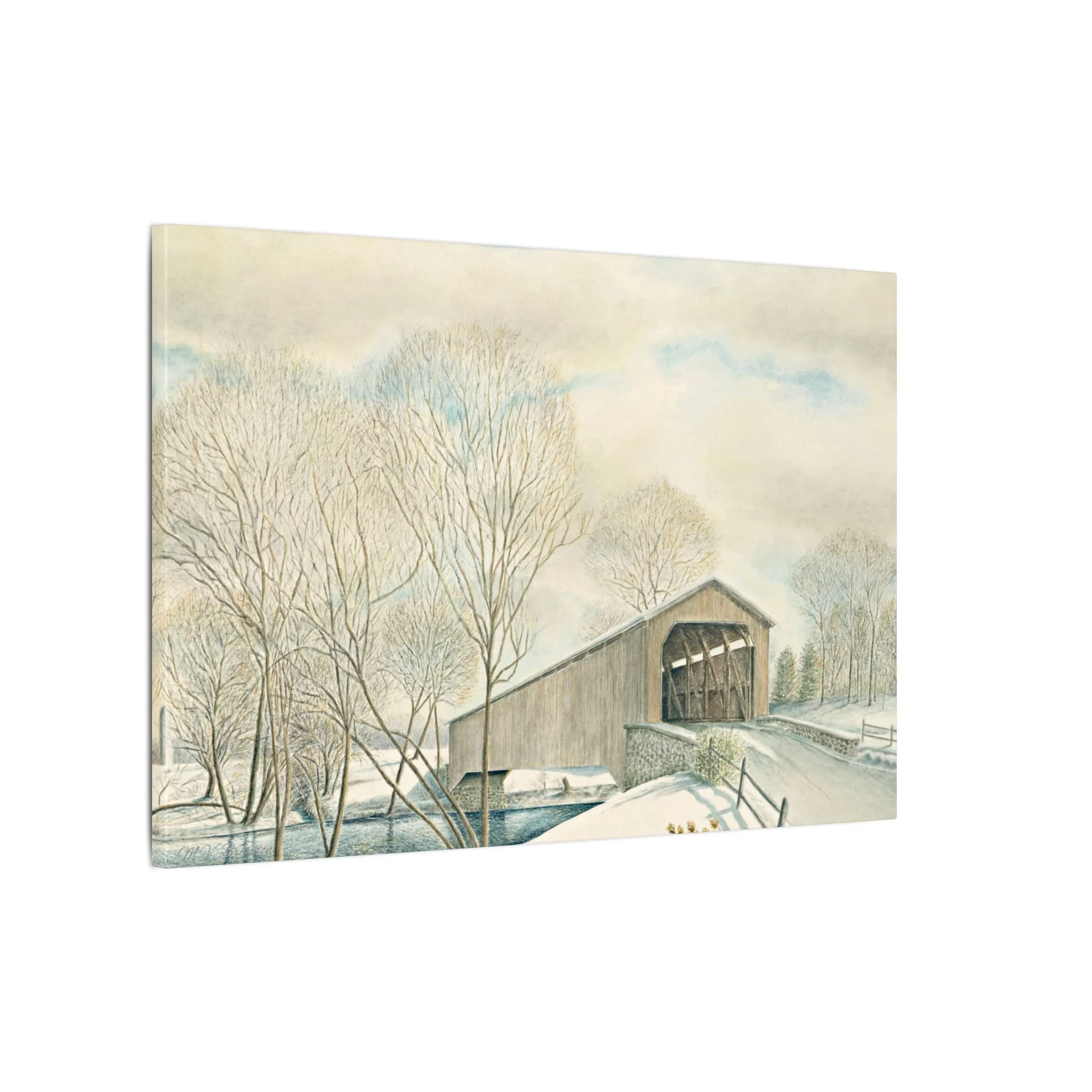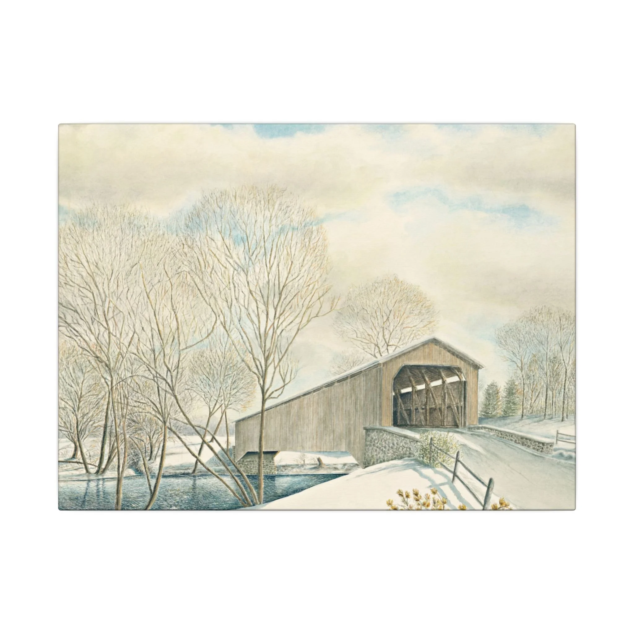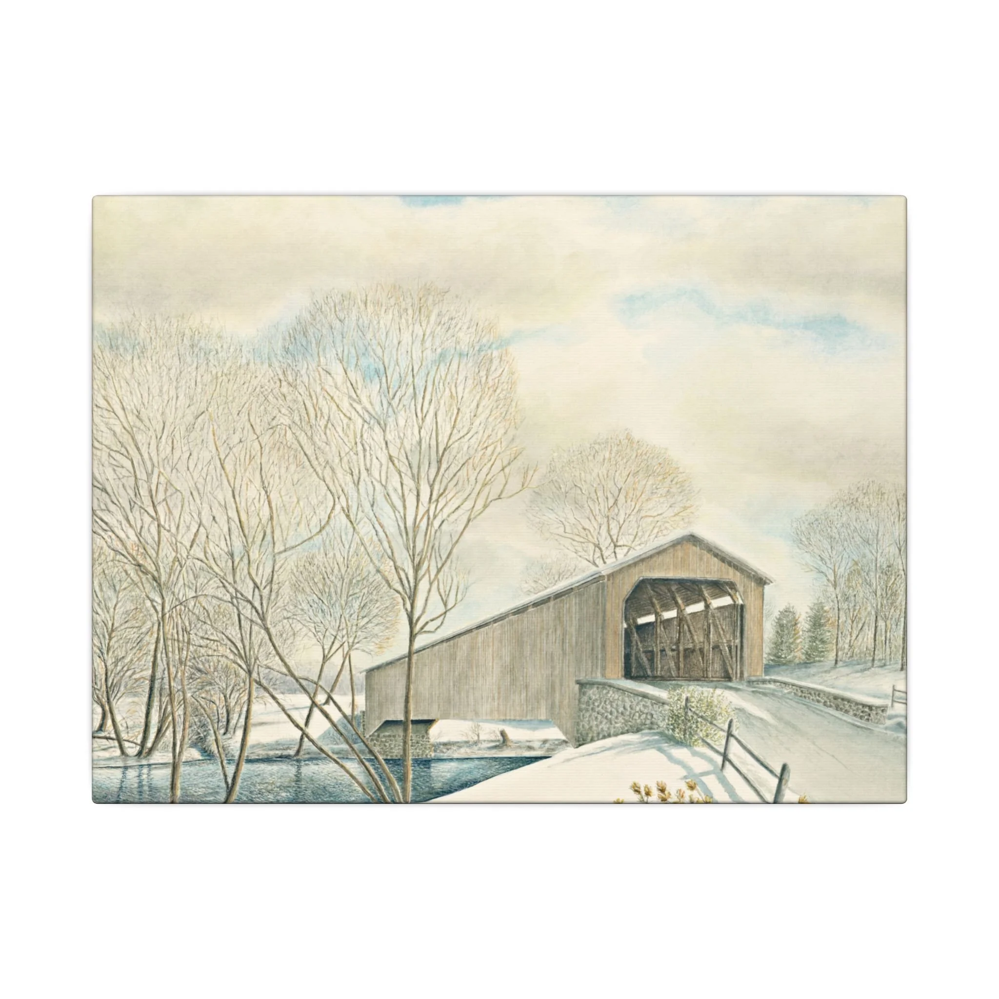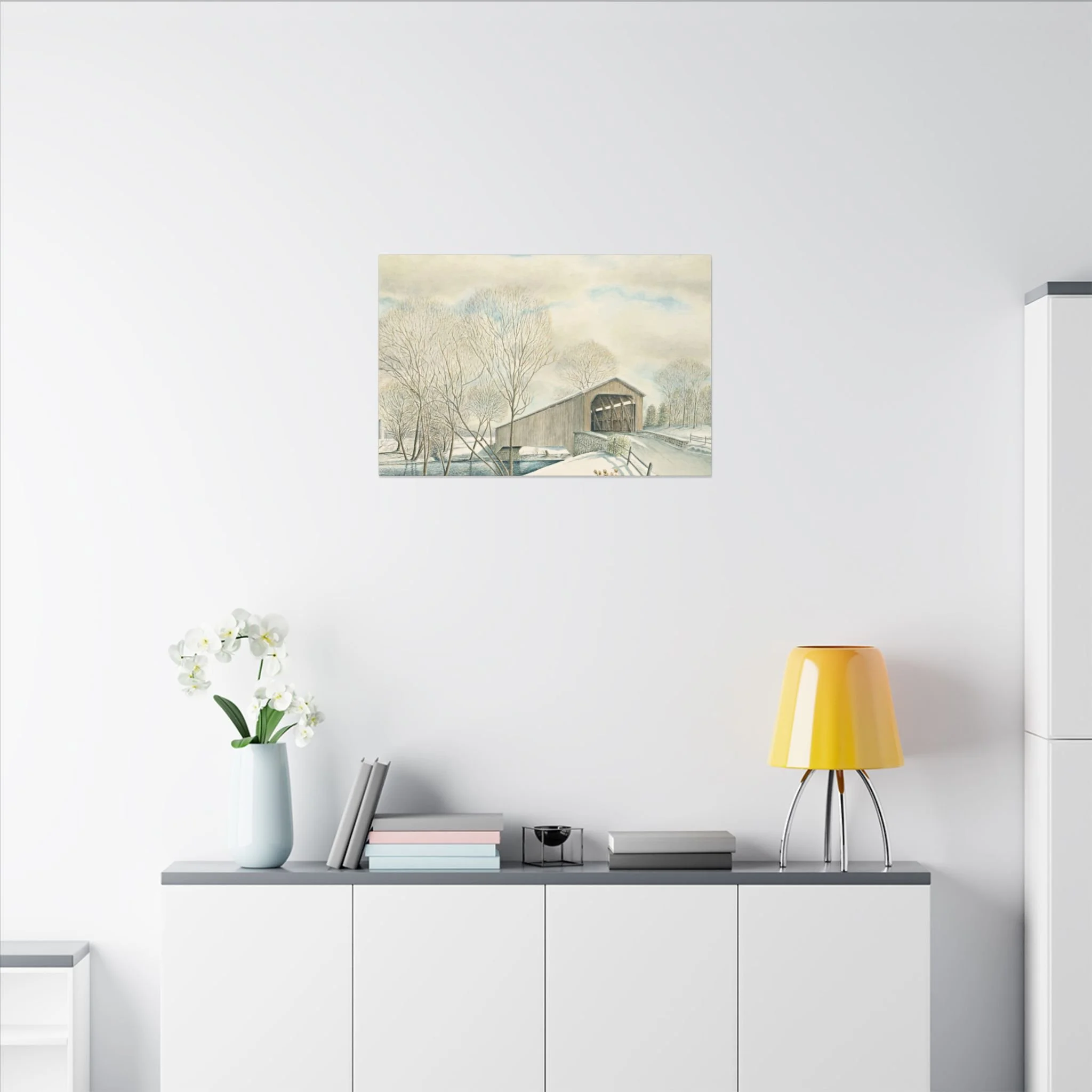Hunsecker's Mill Bridge Watercolor Print Matte Canvas, Stretched | Lancaster PA Landscape